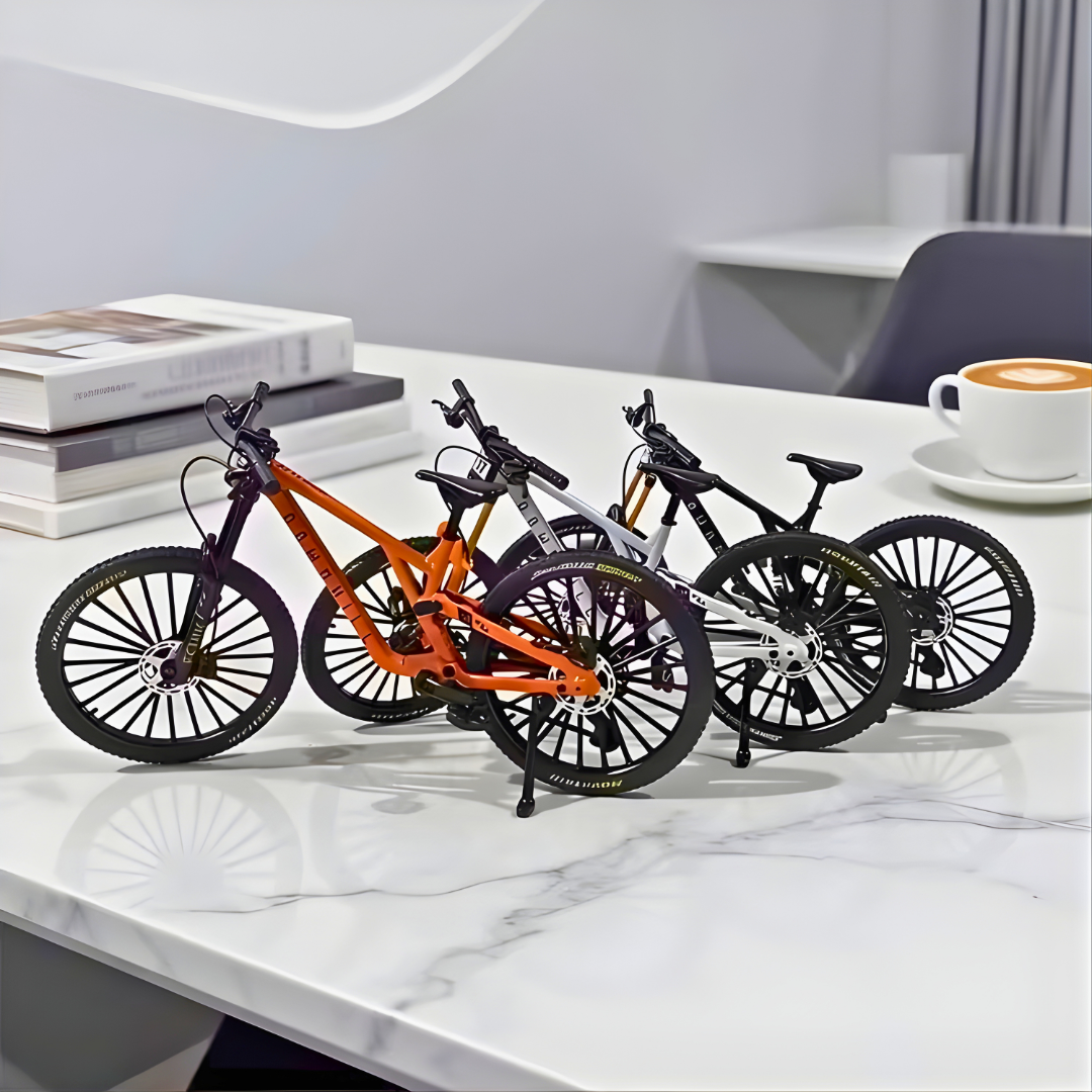 Dependiendo del modelo que elijas, incluye una bicicleta de descenso, de enduro, de montaña o de carretera en miniatura, con detalles realistas y piezas móviles como suspensión y transmisión .